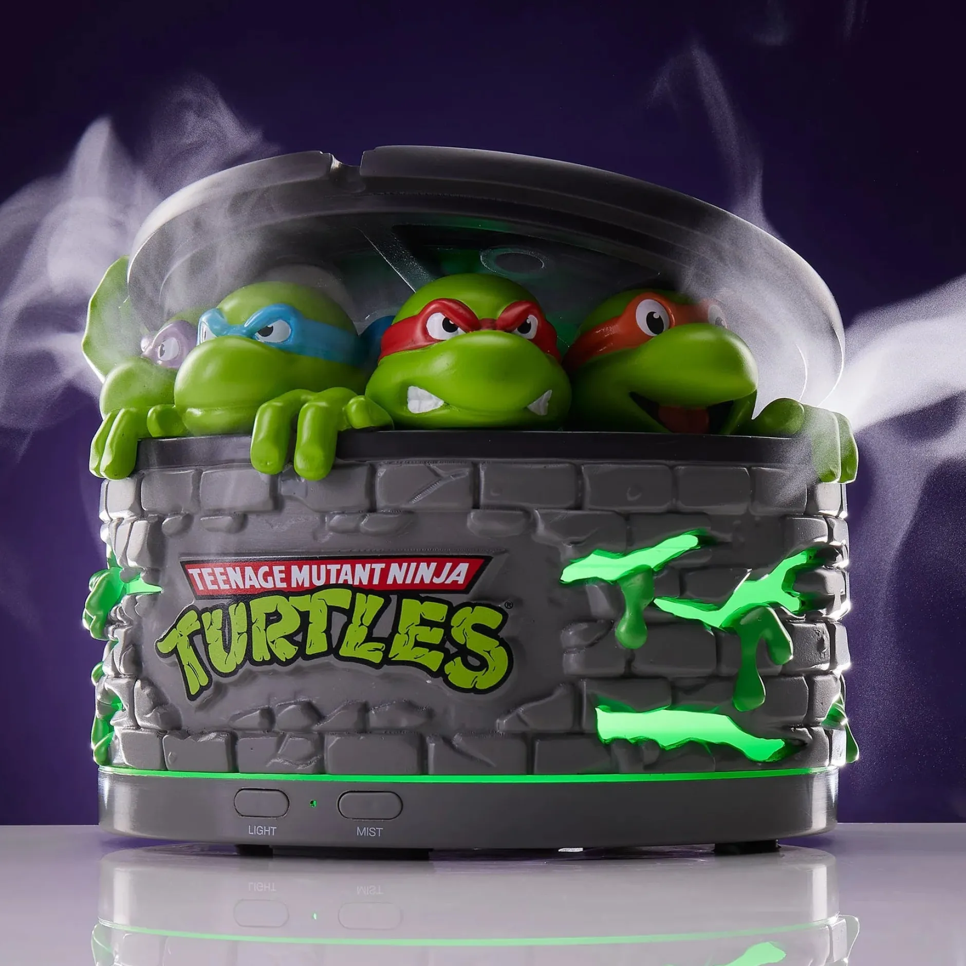 Du brauchst keinen Mutagen-Schleim, um dein Zuhause mit Turtle Power zu erfüllen – ein paar Tropfen Aroma-Öl reichen vollkommen. Der Teenage Mutant Ninja Turtles Aroma-Öl Diffusor bringt dir den Geruch eines sauberen Kanalisationsverstecks in New York (ja, das gibt’s!) direkt ins Wohnzimmer – und zwar mit ordentlich Stil. Die vier Turtles blicken aus ihrem Sewer-Lid-Versteck hervor, während sich darunter ein leuchtender Diffusor verbirgt, der deinen Raum in sanften Nebel und LED-Glow hüllt.