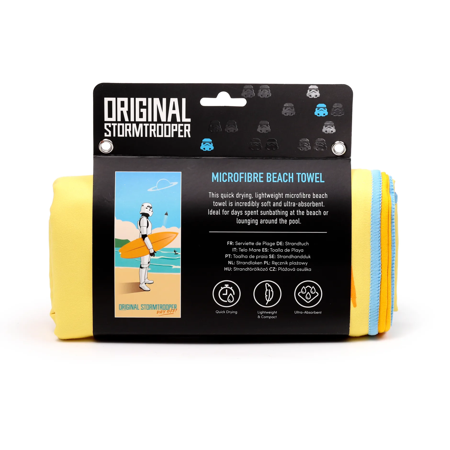 Kaum zu glauben, aber auch ein Sturmtruppler des Imperiums hat Anspruch auf bezahlten Urlaub. Und auch wenn einem die Wunder eines ganzen galaktischen Imperiums offenstehen, entspannt man sich doch am besten an einem Tag am Strand. Mit dem Original Stormtrooper Strandtuch steht einem solchen Urlaub nichts mehr im Wege.