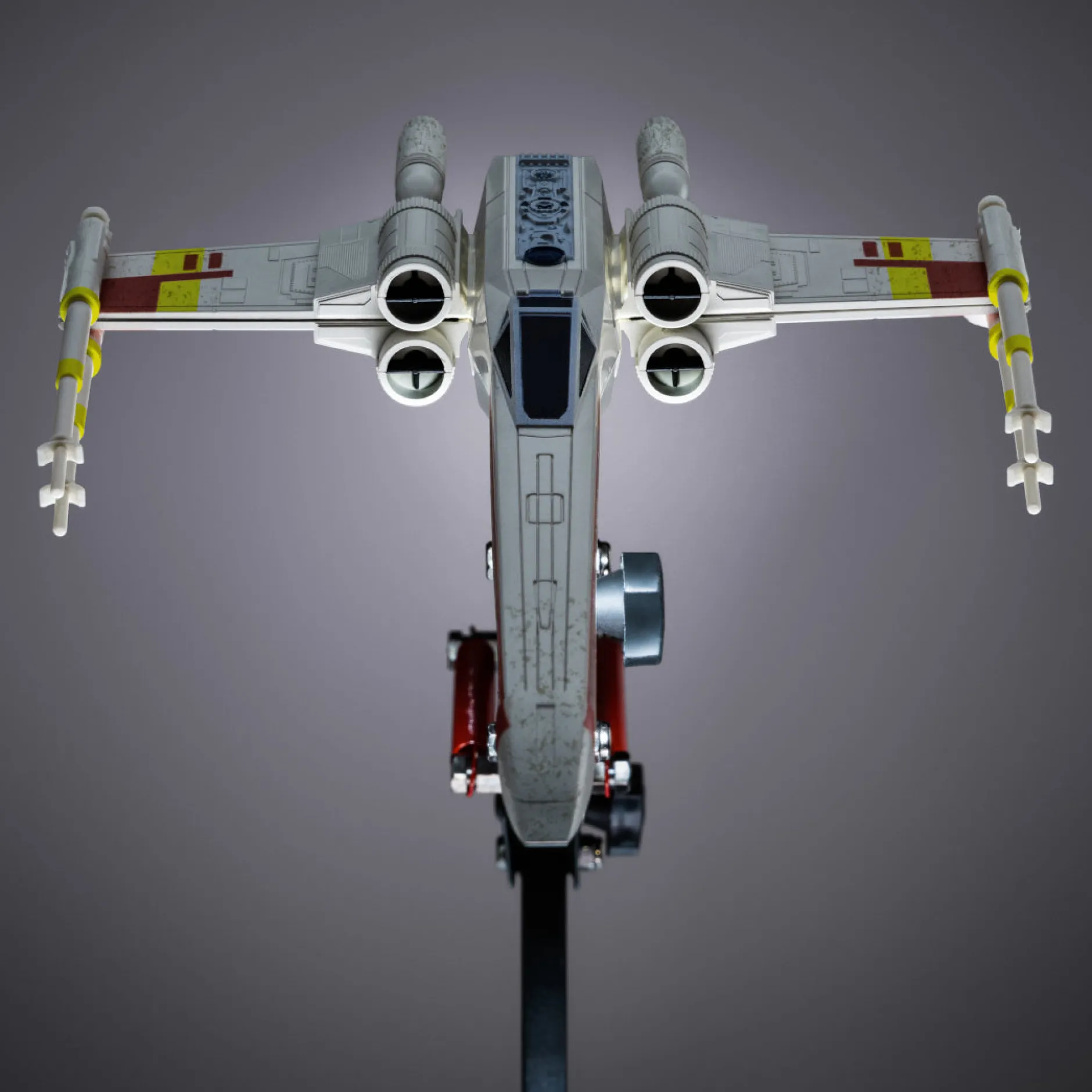 - Durch den flexiblen Arm kann der X-Wing frei positioniert werden