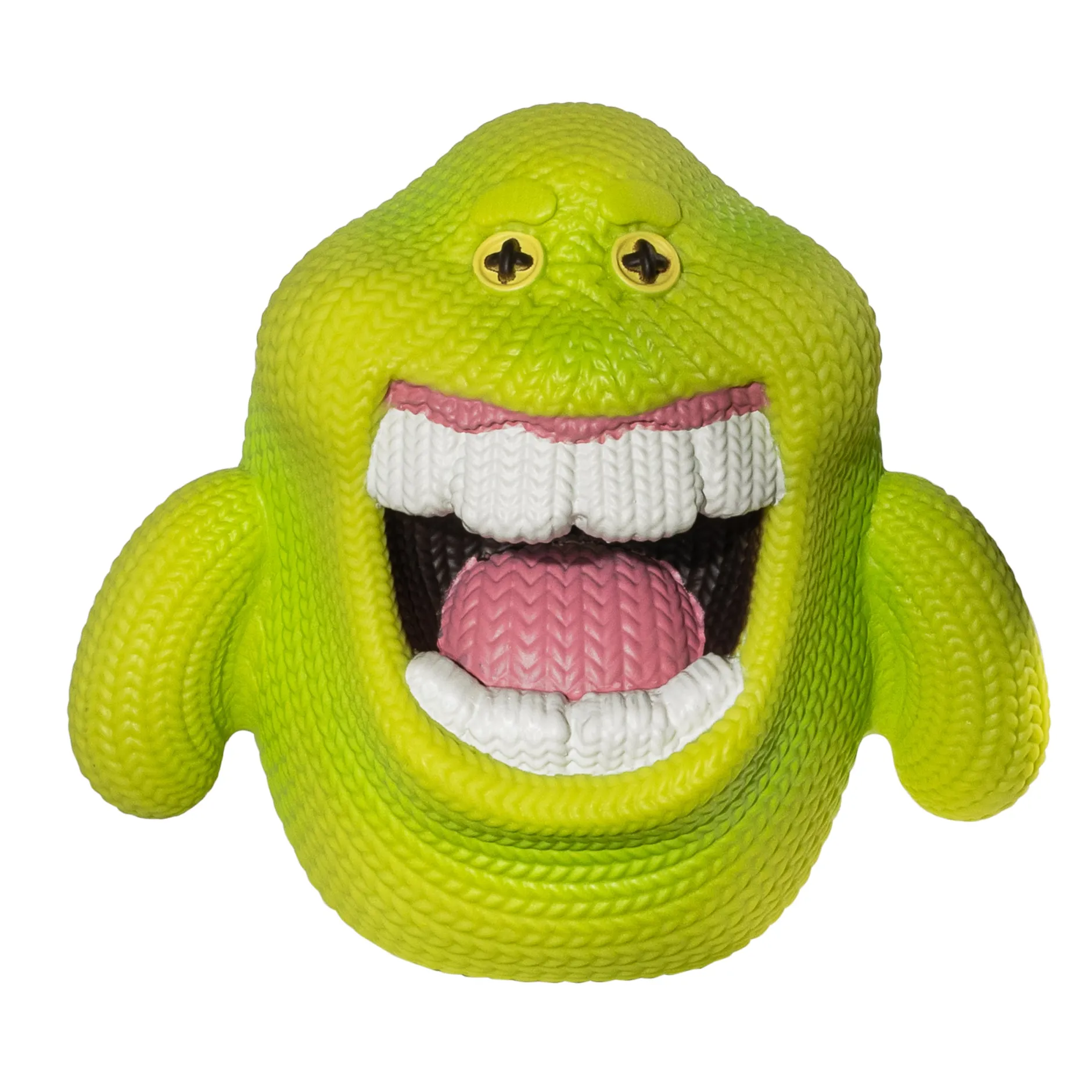 Und sie stellen sich dabei wirklich gut an, wie die „Handmade by Robots“ Ghostbusters-Vinylfigur eindrucksvoll beweist: Diese Nachbildung vom Slimer aus Ghostbusters besteht zwar aus Vinyl, die Oberflächenstruktur erweckt aber den Anschein von sorgfältig gestrickten Reihen und Maschen! Das Beste aus zwei Welten sozusagen – urige Häkel-Optik und die Widerstandsfähigkeit von modernem Kunststoff!