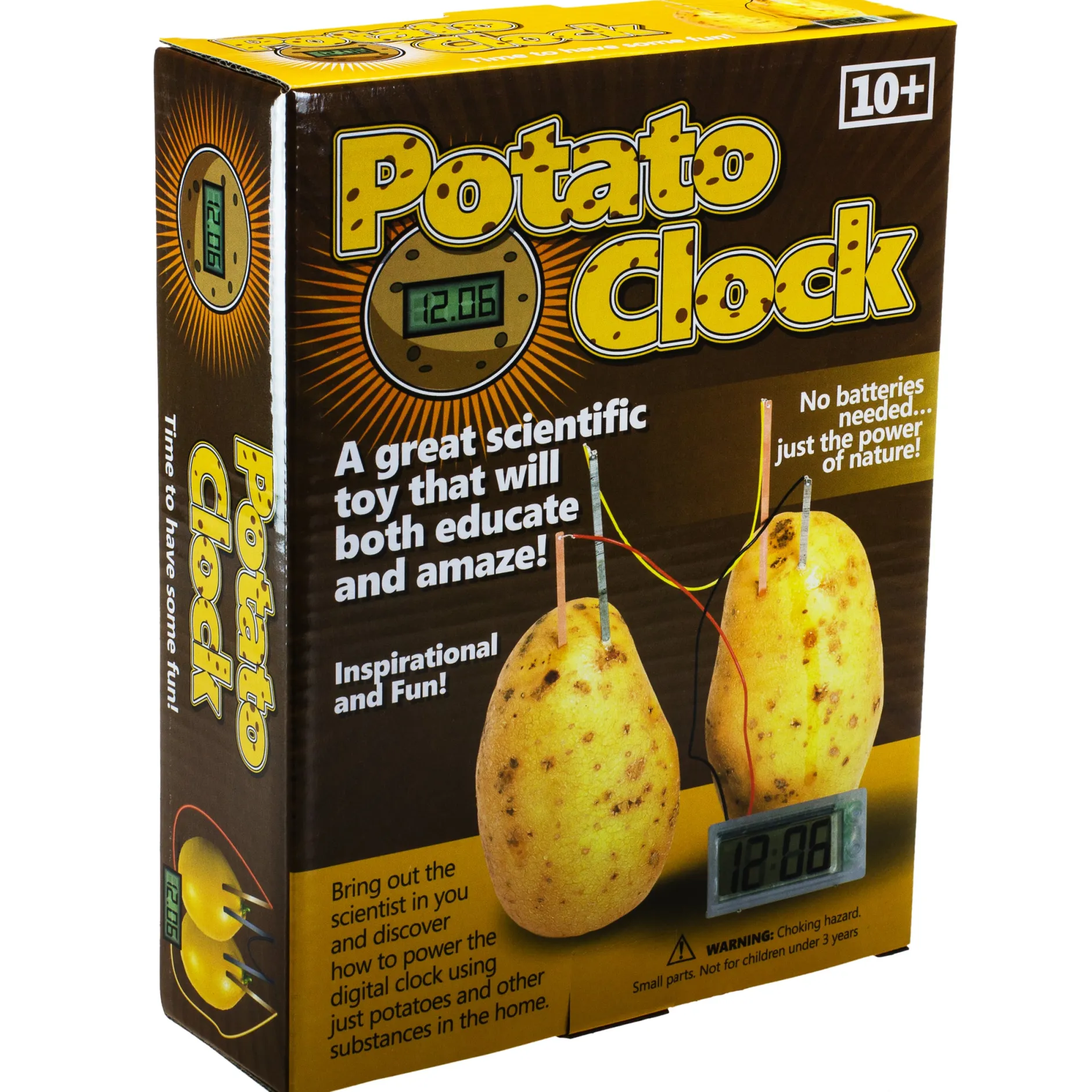 Vielleicht erinnerst Du Dich noch an Deinen ersten Physik-Baukasten, mit dem man aus verschiedenen Früchten Strom für eine kleine Glühbirne gewinnen konnte? Genauso funktioniert die Kartoffel Uhr, nur dass man statt einer schwachen Lampe eine funktionierende Digitaluhr betreiben kann. Die Kartoffel-Batterie