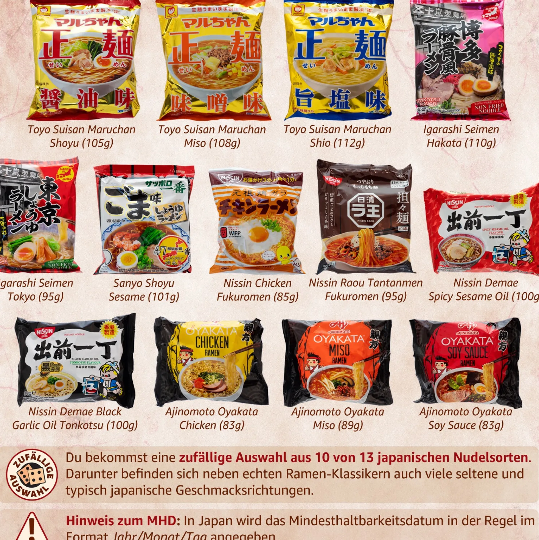- Ramen-Überraschungsbox mit 10 ausgewählten Sorten japanischer Instant-Nudeln