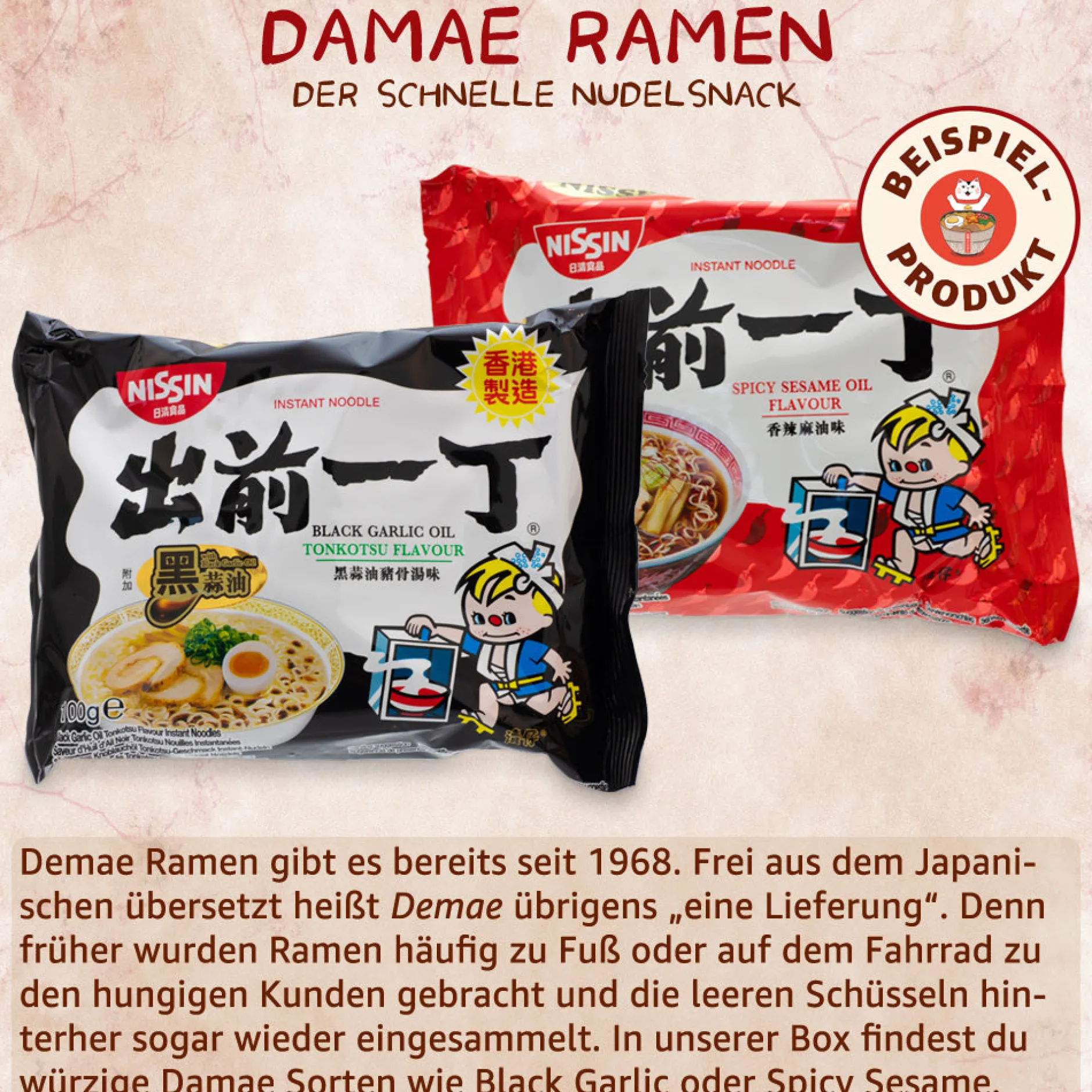 Mit dieser Ramen-Box reist du zum Ursprung der Instant-Nudeln, nämlich nach Japan! Dort gelang es Momofuku Ando vor über 60 Jahren zum ersten Mal frische Nudeln durch Frittieren haltbar zu machen. Während er sie eigentlich als Notnahrung für Krieg oder Umweltkatastrophen gedacht hatte, sind Instant-Ramen heute vor allem deswegen beliebt, weil sie so einfach zuzubereiten und trotzdem lecker sind.