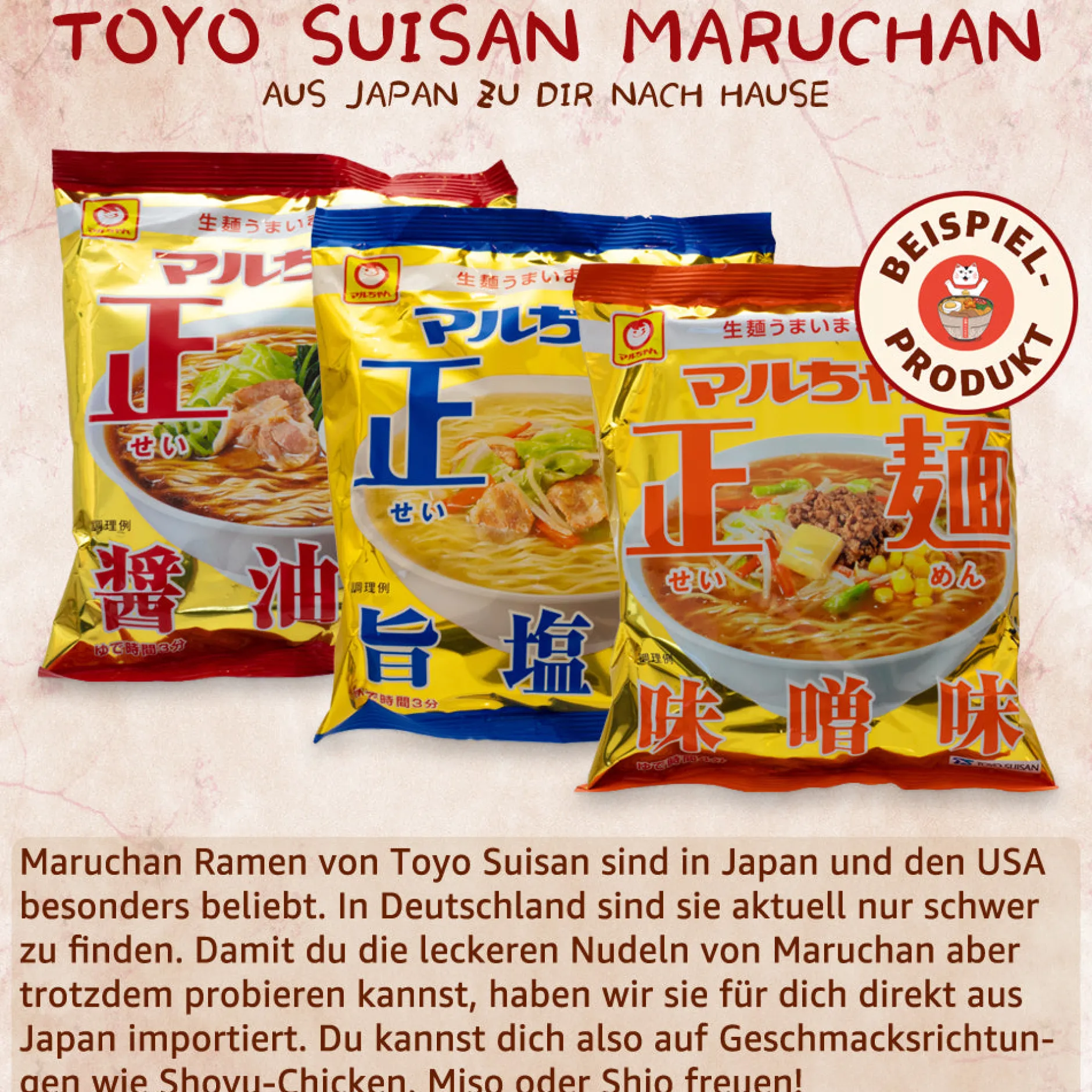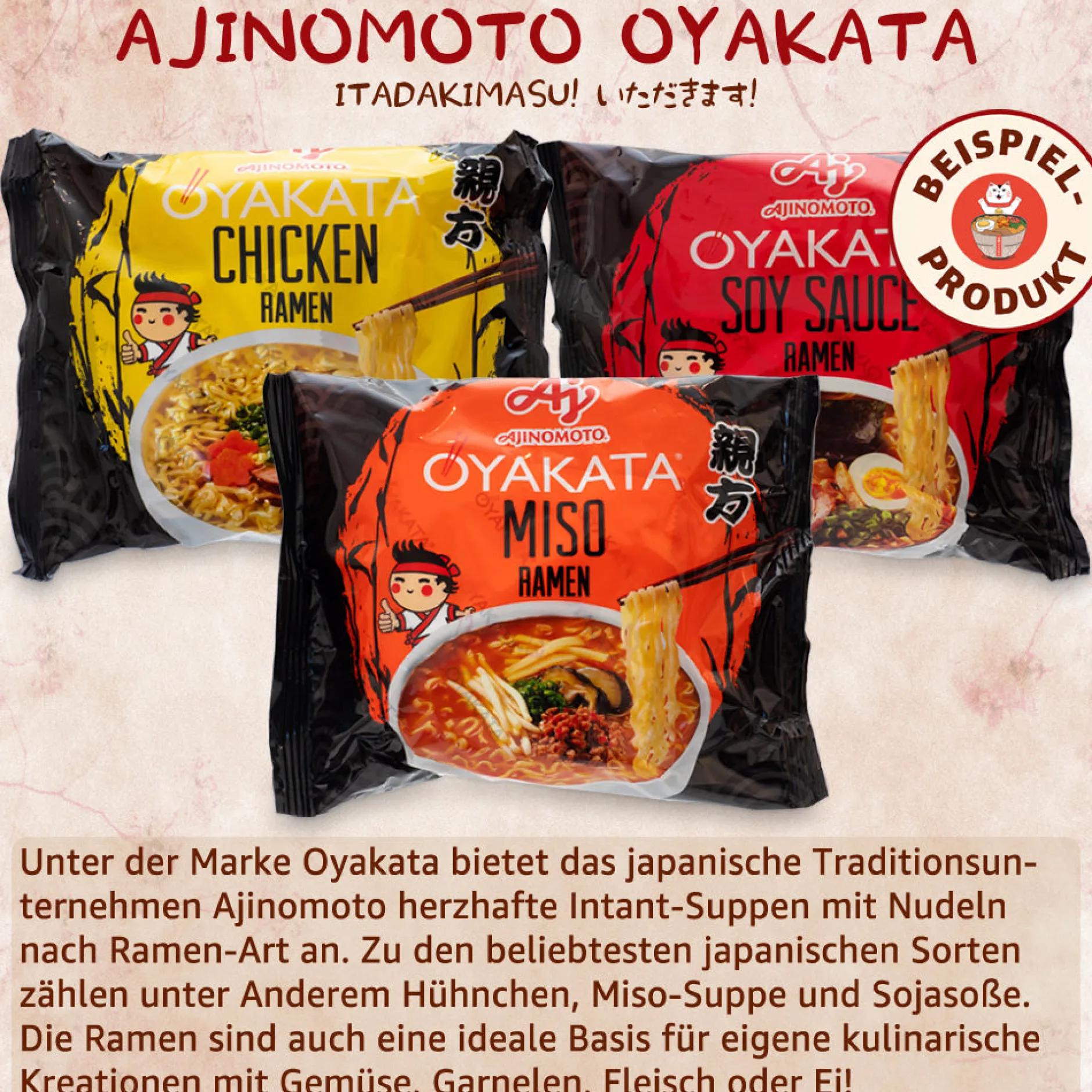 - Sorten können u.a. Miso-Suppe, Sesam oder Tonkotsu Ramen sein